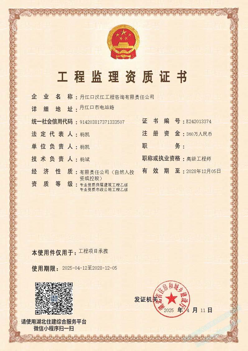 水利工程施工監(jiān)理甲級(jí)電子證照